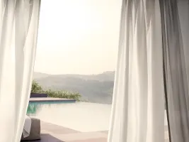 Textile Vorhänge bieten seitlichen Schutz vor Sonne und Blicken und setzen zugleich wohnliche Akzente.
