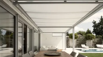 Zum Einsatz kommen langlebige Aluminium-Systeme und hochwertige Markisentücher, entwickelt für den dauerhaften Einsatz im Außenbereich.