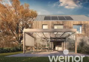 Die einzelnen Glaselemente lassen sich leichtgängig verschieben und fügen sich dezent in die Architektur ein – auch eine nachträgliche Montage am bestehenden Terrassendach ist problemlos möglich.